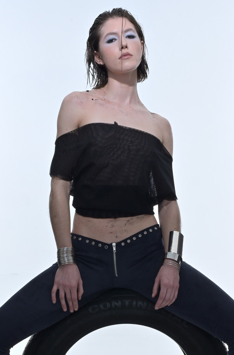 red bone is made with fishnet fabric & lined with mocha brown athletic mesh fabric.
